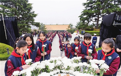 4月2日上午,青岛市未成年人“清明祭英烈”活动启动仪式在青岛市革命烈士纪念馆举行。在国歌声中,仪式正式启动,全体人员肃立向烈士默哀,并敬献花篮,以表达对烈士的崇高敬意和深切缅怀。革命烈士纪念馆讲解员黄腾向同学们分享了革命烈士李慰农、英雄艇长蔡一清、交警烈士李涌的事迹;青岛市“新时代好少年”代表胡辰毅号召同学们用实际行动传承红色基因,弘扬英烈精神,践行使命与担当。青岛市中小学生代表在《山河魂》群雕下深情朗诵原创诗歌《在烈士陵园里》,用深情而坚定的声音表达对革命先烈最真切的怀念与崇敬。 观海新闻/青岛早报记者 刘文超 通讯员 唐一鸣 摄