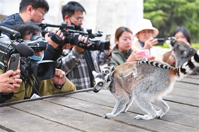 据青岛森林野生动物世界工作人员介绍,园区内的狐猴岛近日有多只小狐猴降生,其中还有一对双胞胎,让环尾狐猴的家族更加壮大了。工作人员还透露,环尾狐猴妈妈会享受特殊的“月子餐”,有小米、红糖、红枣、蜂蜜和坚果等,它和小狐猴们都将在清明假期与广大市民游客见面。