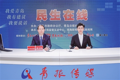 市交通运输局党组书记、局长路玉军(左)做客民生在线。观海新闻/青报全媒体记者 魏懋轩 摄