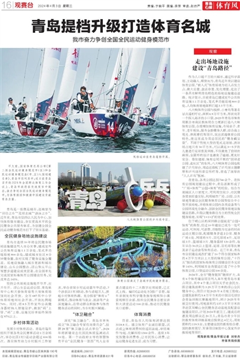 不久前,国家体育总局公布《第二批全民运动健身模范市(区)和全民运动健身模范县(市、区)入围创建名单》,青岛市位列其中;近日在青岛召开的2024年全国群众体育工作会议上,青岛市政府在交流发言中提出,奋力争创全国全民运动健身模范市,为体育强国和健康中国建设贡献青岛力量。