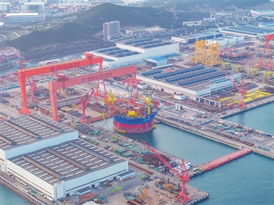 “海洋石油122”完成浮体平台注水。赵山泉 摄