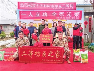 于少林家人接到立功喜报和“二等功臣之家”牌匾。