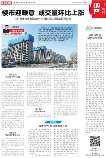 时间进入4月,气温回暖的同时楼市似乎也逐渐进入状态。来自锐理数据统计,3月青岛新房成交6969套,环比上涨125.5%,成交面积约93.59万平方米,成交总金额约133.47亿元,新房成交均价14261元/平方米。其中,新建商品住宅成交5333套,环比上涨128%,成交面积约65.57万平方米。而二手房方面,据青岛贝壳研究院数据,3月青岛市二手房成交6198套,环比上涨144%,这一成交量也成为近10个月以来的最高值。