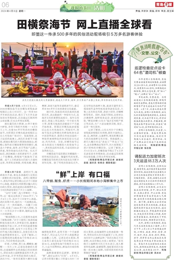 记者了解到,山东头村位于田横岛省级旅游度假区东南侧,拥有丰富的山、海、岛、滩资源,交通便利,现是即墨区最大的沿海海鲜交易市场。祭海盛典上,最引人瞩目的是“请龙王”“拜龙王”仪式,还有歌舞演出等环节,向大家展现了原汁原味的田横民俗。记者了解到,4月5日至6日,田横祭海节吸引了5万多名游客前来参观体验,活动通过互联网向全球直播,引得众多网友围观。