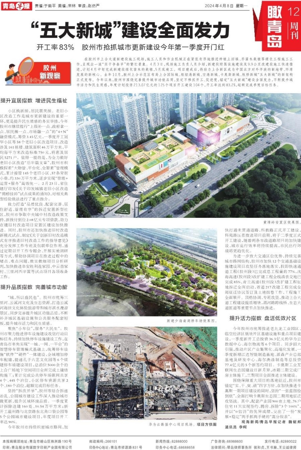 今年胶州市统筹推进老九龙工业园区、临空经济区低效片区基础设施和重点项目建设,一季度新开工总投资36.3亿元的华为云数据中心、海尔物流等6个项目。同步招大引强,推动片区产业集聚化、高端化发展,一季度新增江达智能制造基地、派森产业总部基地及研发中心、海尔洗涤制造等总投资77.4亿元的5个新签约项目。卡奥斯工业互联网生态园建设日新月异,冰箱二期完成厂房主体施工,三期项目全面推进主体建设。