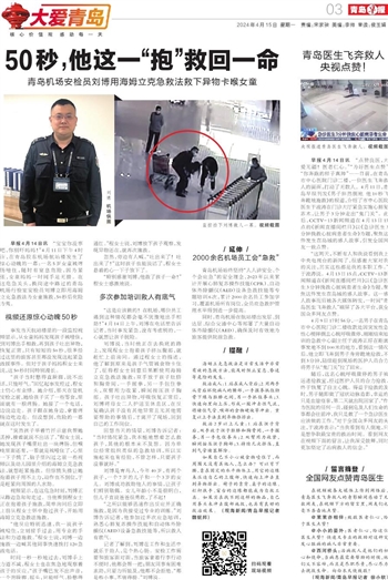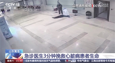 早报4月14日讯 “点赞良医,大爱无疆!医者仁心。”“为好医生点赞”“你奔跑的样子真帅”……日前,在青岛市中心医院门诊二楼,一位医生飞奔救人的画面,打动了无数人。4月11日,青岛早报刊发《男子猝然倒地 他10秒飞奔跪地施救》的报道,介绍了市中心医院医生于波涛在门诊大厅紧急实施心肺复苏术,让男子3分钟走出“鬼门关”。此后,CCTV-13新闻频道在4月13日15点的《新闻直播间栏目》以《急诊医生3分钟挽救心脏病患者生命》为题,聚焦这件发生在岛城的感人故事,引发全国网友一致点赞。