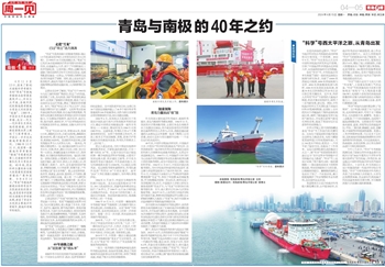 4月11日至13日,结束了第40次南极科学考察任务的“雪龙”号极地考察破冰船停靠在奥帆中心,并向公众开放,岛城市民近距离地感受极地与青岛之间的紧密“连接”。1984年,中国首次开展南极考察,此后一代又一代科考队员奔赴地球最南端,并相继在南极冰原上建起了5座考察站,中国正一步步迈向极地考察强国之列。1986年10月31日,我国第一艘极地科学考察船“极地”号载着我国第三次南极科学考察队队员从青岛启航。40年来,青岛科研力量的参与极大拓展着我国南极考察的广度和深度。今年4月10日,“雪龙”号极地考察破冰船将青岛作为凯旋返航的靠泊地,在青发布中国第40次南极科学考察成果,彰显了青岛作为我国主要海洋科考城市、极地科考城市的地位。