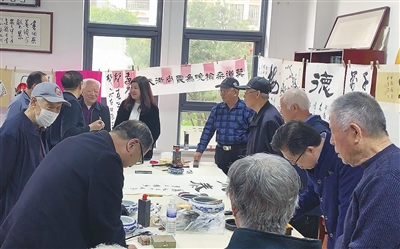 青岛北部画院书画家走进桃花源城阳区社会福利中心。
