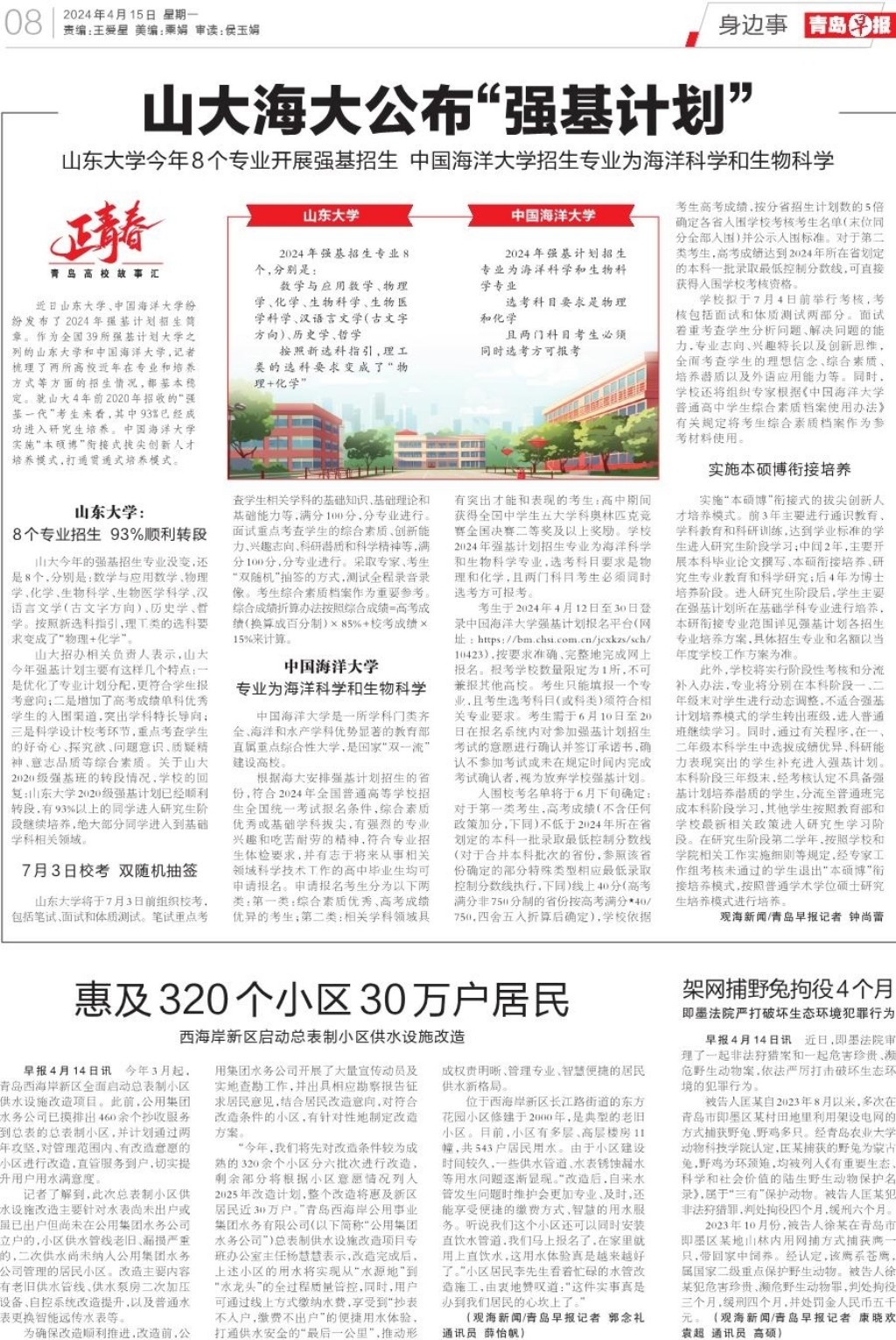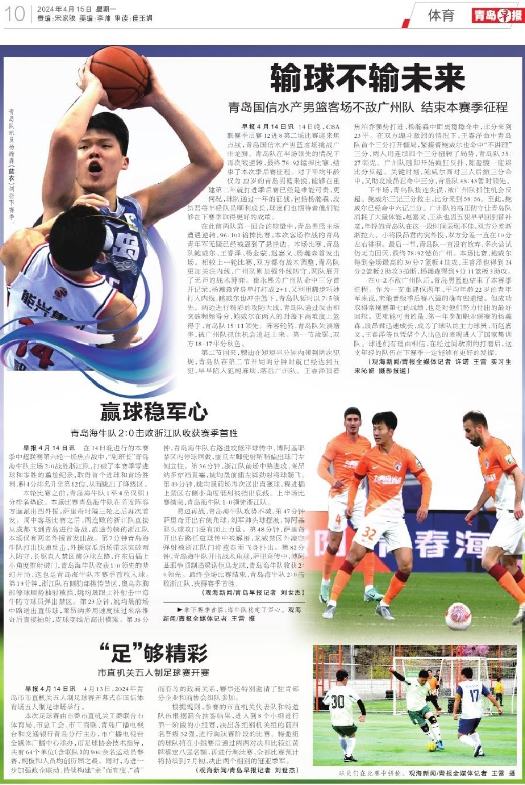 A01 头版 A02 加快城市更新建设 提升市民生活品质 A03 大爱青岛 A04 周一见 A06 周一见 A07 都市圈 A08 身边事 A09 文娱 A10 体育 A11 瞰青岛 A12 天下