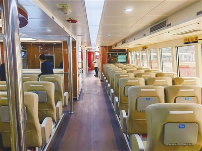 “青旅奥帆号”全部座位均为软座。观海新闻/青报全媒体记者 王雷 摄