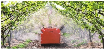 遥控风送式喷雾机正喷洒农药。刘明元 摄