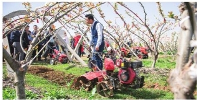 果农正在操作微耕机。 刘明元 摄