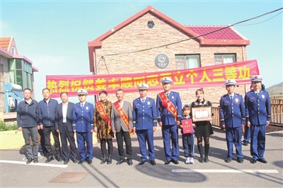 青岛消防救援人员姜丰顺(右五)荣立个人三等功。