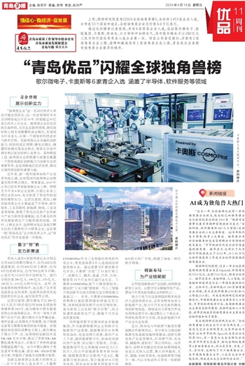 近年来,新一轮科技革命和产业变革风起云涌,全球范围内独角兽企业数量呈现井喷式增长。聚焦青岛,2017年以来已经有多家独角兽企业上榜。特别是今年有6家企业登榜,占据山东省上榜企业的60%,充分彰显了青岛科技创新的雄厚实力。记者注意到,青岛上榜的独角兽企业主要涵盖了半导体、软件服务、工业互联网、新能源、物流、工业设备等领域,展现了青岛在优势产业和新兴产业方面的加速崛起,也为青岛培育和发展新质生产力提供强劲动能。同时,上榜企业中,包括特来电以及海尔孵化出的卡奥斯和日日顺等企业,也在第一批“青岛优品”企业的名单之中,让“青岛优品”的含金量进一步提高。