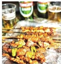 炭烤肉的香,就像氤氲在空气中的“烤肉分子”,尤其在饥肠辘辘时,能够随着空气流动迅速击穿你的“减肥防线”。烟雾缭绕中的烤肉,在烤炉上用蒲扇一扇,香味就四散开来,肉还未吃到,口水已经先流下来了。“青岛人吃烤肉,不爱吃纯瘦肉,肉筋和五花才吃着香。”刘先生说,烤肉品种多、味道地道,加上青岛啤酒的加持,更是令青岛炭烤肉活色生香。