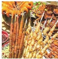 有着近水楼台先得月的优势,青岛人吃炭烤肉随便就能给自己加个硬菜。海蛎子、蛤蜊、扇贝、偏口鱼、海螺、海肠……随便找个市区小码头,或者临街菜市场,就能买到烧烤选用的新鲜海鲜。洗干净后,不用其他加工,直接放到炭火上烤。原汁原味,吃着鲜亮。这种独特的烤制方式和简单原始的烹饪方式,最大程度地保留了海鲜的鲜美口感,保留了食材原汁原味的特点。在炭火的熏陶下,海鲜香气扑鼻而来,加之口感鲜嫩,令人回味无穷。