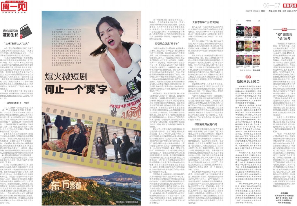 “明明知道接下来会发生什么,还是忍不住想看。”“一分钟一集,不知不觉刷了几十集,根本停不下来。”……一刷起来就上头,反转反转再反转,爽点热梗频出的微短剧持续爆火,观众数量不断上升,市场规模爆发式增长,已然成了影视剧行业的新风口。青岛拥有海滨景观、万国建筑、空港基地等多样化的取景拍摄地,具有得天独厚的影视产业发展优势。微短剧产业正在青岛萌芽生长,多区发力布局微短剧基地,吸引越来越多的微短剧剧组落地。不过,在微短剧制作的背后,也有着不为人知的酸甜苦辣。近日,早报记者走进青岛微短剧剧组,带你体验微短剧里的人生百态。