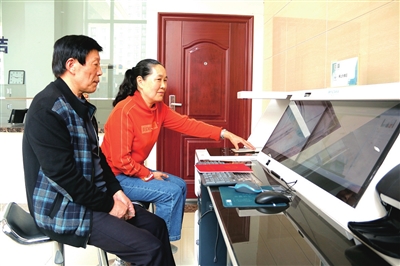 董先生夫妇在社区“政务直办间”办理户口迁移业务。