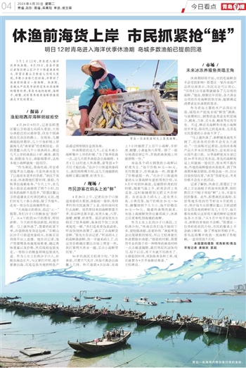 5月1日12时,青岛进入海洋伏季休渔期。4月29日,青岛早报记者探访崂山区沙子口街道南姜码头、即墨区鳌山卫街道七沟码头发现,多数小渔船已经回港,并带回了休渔前的最后一船海鲜。休渔期,岛城水产批发市场将迎来冷冻海鲜的销售旺季,青岛本地的蛤蜊、海蛎子、螃蟹、对虾等养殖类海鲜将继续满足市民的需求。
