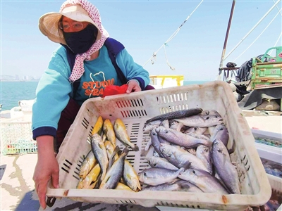 50岁的渔民王松涛介绍,“在休渔前,只要天气允许,我每天都会出海撒上几网。昨天凌晨4点出海,在海上7小时捕捞了上百斤小海鲜,有虾虎、螃蟹、小黄鱼和八带等。除了一部分被酒店预订外,其他的渔获刚上岸就销售一空。”