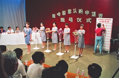 1993年7月30日,青啤股票认购申请表摇号仪式举行。张岩 摄