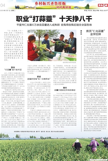“今年天气相对来讲比较冷,蒜薹的产量有所减少,往年平均亩产大约有2000斤,今年在1800斤左右,不过总体来讲影响不大。”青岛锐阳蒜薹专业合作社理事长吕仁智介绍,今年从4月28日开始大规模“打蒜薹”,预计最晚到5月10日便会全部完成。虽然产量有所下降,但价格较往年相比仍然保持稳定,收购价在每斤4.7元左右。蒜薹的粗细与长度、是否有病虫黄斑、根部是否整齐,都是收购时的考量因素。收购商主要来自临沂、寿光、莱芜等地以及东北三省,他们将收购的蒜薹销往全国各地。“平度这边有冷库可以贮藏蒜薹,这为远销外地创造了条件。现在全镇有200多家种植户入股合作社,既有老种植户,也有一些年轻人特意回来做蒜薹产业。”吕仁智说。