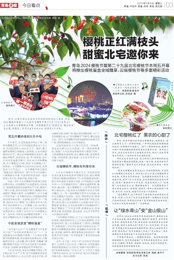 昨天,记者从崂山区政府召开的新闻发布会上获悉,青岛2024樱桃节暨第二十九届北宅樱桃节将于5月10日(本周五)上午在崂山大崂樱桃谷开幕。本届樱桃节以“甜蜜北宅 樱你而来”为主题,将推出一系列丰富多彩的活动,持续到6月中旬。