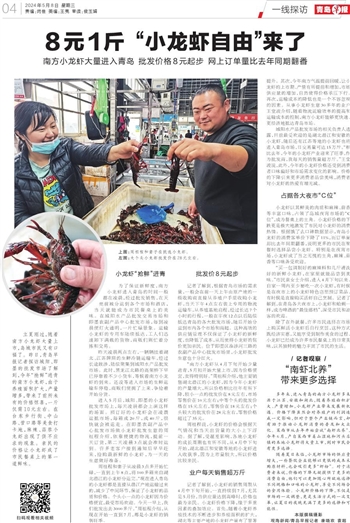 记者了解到,小龙虾的销售周期从4月中下旬开始,一直持续到7月,尤其是5月份,当供应量达到高峰时,价格也最为亲民。小龙虾价格下降,缘于多重因素的叠加效应。首先,随着小龙虾养殖技术的不断进步和养殖面积的扩大,湖北等主要产地的小龙虾产量有了显著提升。其次,今年南方气温提前回暖,让小龙虾的上市期、产量有所提前和增加,市场供应量的增加,自然使得价格承压下行。再次,运输成本的降低也是一个不容忽视的因素。从事小龙虾生意30多年的业户王堂波介绍,随着物流运输效率的提高和运输成本的控制,南方小龙虾能够更快速、更经济地抵达青岛市场。