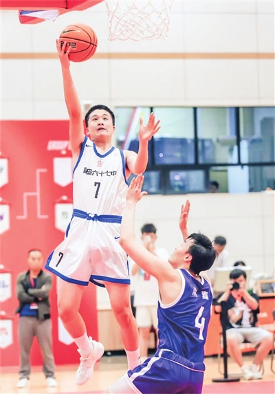 在与清华附中队的比赛中,青岛六十七中队的球员斗志昂扬,跳球抢拼,毫不示弱,凭借犀利的进攻,球员们在比赛中屡屡上演精彩进球,每一次投球都是与自我的博弈,每一次上篮都是对青春的诠释。比赛现场,加油声此起彼伏,响彻整个场馆,为在场比拼的球员鼓气助威。