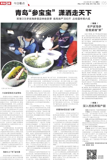 记者了解到,除了即墨海参养殖基地外,青岛海参养殖区主要分布在胶州湾、崂山和西海岸新区等区域,目前已经到了收获旺季,为休渔期间市民餐桌增添了不少鲜味。说到青岛海参行业,不得不提老尹家海参。