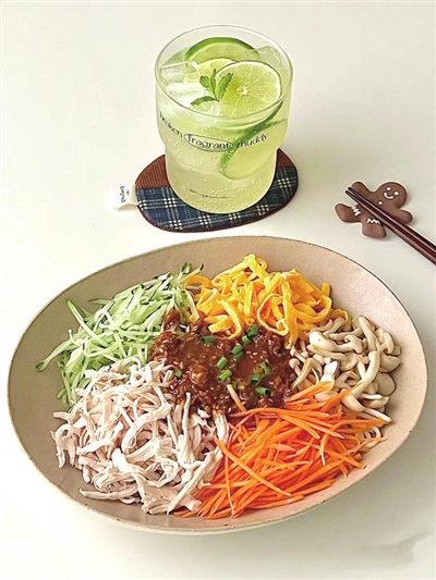在吃凉面上,南方人放下了精致。“在夏天,一切精致都是多余,一碗面的凌乱感反而增加了大家对口味的期待。”在青岛工作的杭州人林航,时常做几道家乡的凉面解馋。