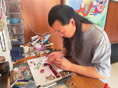 杜冬冬制作服饰配饰。