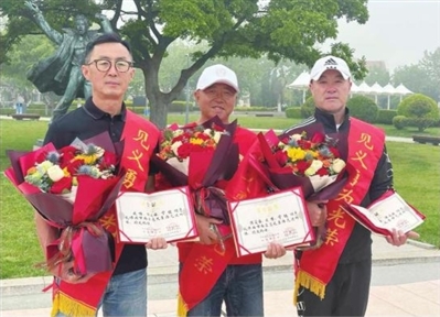 昨天,青岛市市南区委政法委、市南区见义勇为协会举行见义勇为先进群体颁奖仪式,为5月18日在市南区音乐广场附近不惧风高浪急、勇救落水群众的陈爱国、咸博、宁健同志颁发“市南区见义勇为先进群体”荣誉证书和奖金。受到表彰的陈爱国、咸博、宁健是这座城市中的普通一员,他们之中有退休职工、社区公益岗职工、退役军人,他们既是平凡的市民,又是身怀绝技的“巧克力大爷”,前一秒还在沙滩上、海岸边享受日光浴,下一秒就变成为落水者架起生命之桥的“超级勇士”。去年以来,青岛早报首发并持续关注青岛“巧克力大爷”感人事迹,获得包括央视、新华社在内的国内数百家媒体转发或关注报道,让青岛“巧克力大爷”被冠以“城市新的旅游打卡项目”名号,成为青岛城市文明和文化、旅游方面的正能量典型。