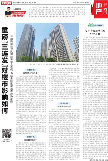 5月17日,针对目前的房地产市场,中国人民银行、国家金融监督管理总局等部门再次打出“组合拳”,其中首套房贷款首付降至15%,公积金利率也下调0.25个百分点。同时,还设立保障性住房再贷款,支持地方国有企业以合理价格收购已建成未出售商品房。一系列政策之后,对于楼市将产生哪些影响?有消息称,在新政公布的周末,北京、上海、广州、深圳等一线城市,看房者明显增多,有些楼盘的营销中心甚至出现“人山人海”的场景。而对于青岛市场来说,利好消息发布后市场表现如何?对未来的影响又有哪些?