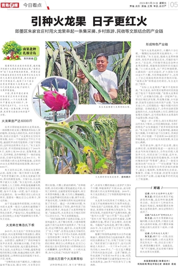 朱玉龙:常见的水果引不起游客的兴趣,选品种时就选稀奇点的。我在对十几种南方水果进行考察后,发现即墨具有种植火龙果的条件,事实证明我们成功了。