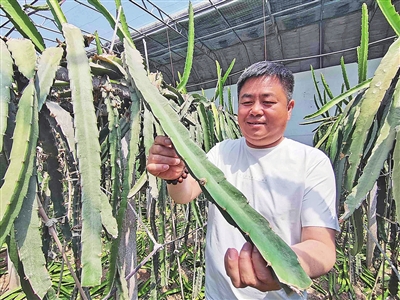 随着现代农业技术的发展,越来越多的南方水果在青岛落地生根,“南果北种”成了农业种植的新思路。即墨区蓝村街道朱家官庄村党支部书记朱玉龙为将火龙果引进到即墨,多次到南方学习种植技术,选择了4个适合在青岛种植的火龙果品种,如今已经发展成占地15亩的火龙果种植基地。