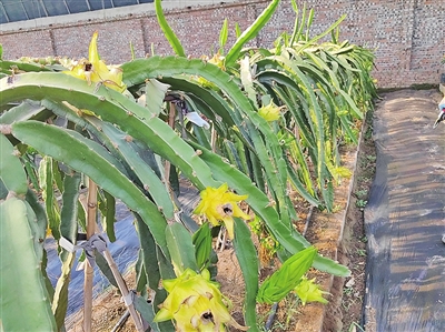 “为维持南方的气候特点,大棚内的温度不能过高,超过35℃,火龙果会长得比较慢,大棚上要盖防晒网。”在种植初期,存在的问题主要是温度达不到,有死亡的种苗,这就需要更好地通风,南方水果喜欢酸性土壤,北方的土壤偏碱性,朱玉龙就带着村民改良土壤,调节水质,多施有机肥,为保障光照时间还特别安装了采光灯。通过一次次解决问题,朱玉龙慢慢摸索出了经验,最终收获了挂满枝头的果子,他也成了火龙果种植专家。“实践证明,火龙果在北方地区同样可以茁壮生长。”朱玉龙骄傲地说。