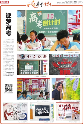 在青岛17中、67中等学校,黑板上的倒计时数字,提醒同学们大战在即,不日启程;校园里,励志的标语,鼓励学生们全力以赴,胜利在望。