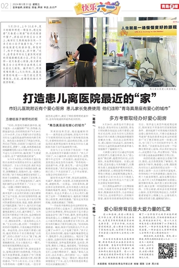 5月24日,由青岛市天泰公益基金会、青岛市妇女儿童医院、青岛日报社联合发起设立的天泰爱心厨房正式启用,旨在为在妇儿医院住院治疗的大病患儿家庭提供健康饮食解决方案。而在此之前两周左右,爱心厨房已经试运行,面向青岛市妇女儿童医院血液科的诸多患儿家庭敞开了温暖的大门。