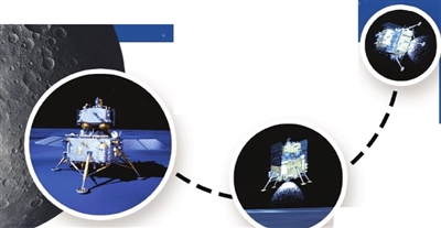 “关键缓冲”确保安全落月——即将到达月面时,发动机关闭,利用缓冲系统保障组合体以自由落体方式到达月面,最终平稳着陆在月球背面南极-艾特肯盆地。
