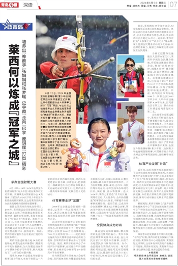 6月12日,2024年全国室外射箭锦标赛(青少年组)将在莱西市张弓搭箭正式开赛。这项中国射箭协会A类赛事之所以“花落”莱西,与这片沃土相继培养出北京奥运冠军张娟娟和青奥会金牌得主张梦瑶两位“神箭手”有很大关系。莱西不仅有着“射箭之乡”的美誉,而且已经成为培养体育人才的沃土。今年4月,莱西姑娘史宇霞获得世界竞走团体锦标赛女子20公里竞走团体冠军,正在奋力“走向”巴黎奥运赛场;不久前,莱西小伙庞琪耀在第8届中国大学生散打锦标赛中获得男子丁组100KG冠军。近年来,莱西输送培养的运动员已累计在国际性比赛中斩获8金3银3铜,在全国性比赛中豪取43金19银12铜,莱西正在全力打造“冠军之城”。
