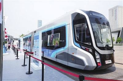 早报6月13日讯 6月13日,2024北京至南京国际城市轨道交通展览会暨高峰论坛(Metro Trans)在南京开幕,中车青岛四方机车车辆股份有限公司自主研制的新型城市智慧快轨列车在展会上首次亮相,该型列车被称为“马路上的地铁”,为城市交通提供了一种新的解决方案。
