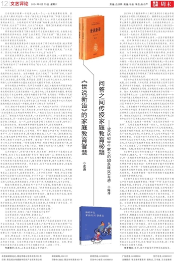 父母是孩子的第一任老师,也是一个人一生中最重要的老师。因此,很多人都认同这样一句话:“孩子是父母的复印件。”中国人是世界上特别具有家庭观念的族群,“孝悌”深入国人之心,中国人对家庭教育的重视由来已久。小时候就听到“曾参杀猪”的故事,以及孔子对其子孔鲤“不学诗,无以言”“不学礼,无以立”的庭训。阅读《世说新语》不仅读到了古人的个性风采,也看到了古人的教育智慧。