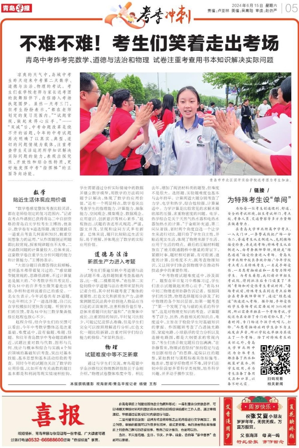 A01 头版 A02 划重点 A03 发布 A04 今日看点 A05 考季冲刺 A06 大爱青岛 A07 大爱青岛 A08 都市圈 A09 身边事 A10 周末 A11 人文青岛 A12 文艺评论