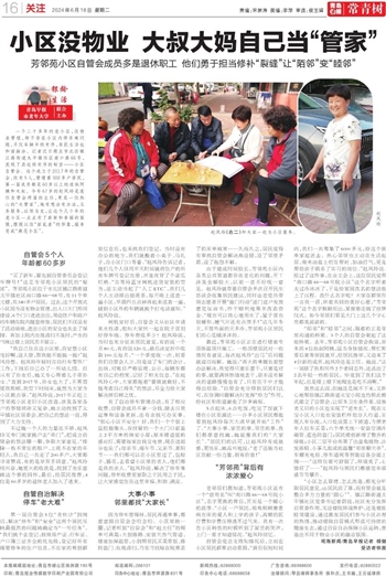 “陌邻”和“睦邻”之间,隔着的正是邻里沟通的桥梁。5个人的自管会架起了这座桥梁。去年,芳邻苑小区自管会换届,原本的4位叔叔阿姨,因为身体情况、帮忙照看后辈等原因离开,经居民推举,又迎来了4位新的成员,赵风玲还是主任。她说,“这一届除了我和另外2个老同志外,还选出了2名年轻一些的居民。毕竟到了我们这个年纪,总是楼上楼下地爬也是吃不消啊。”