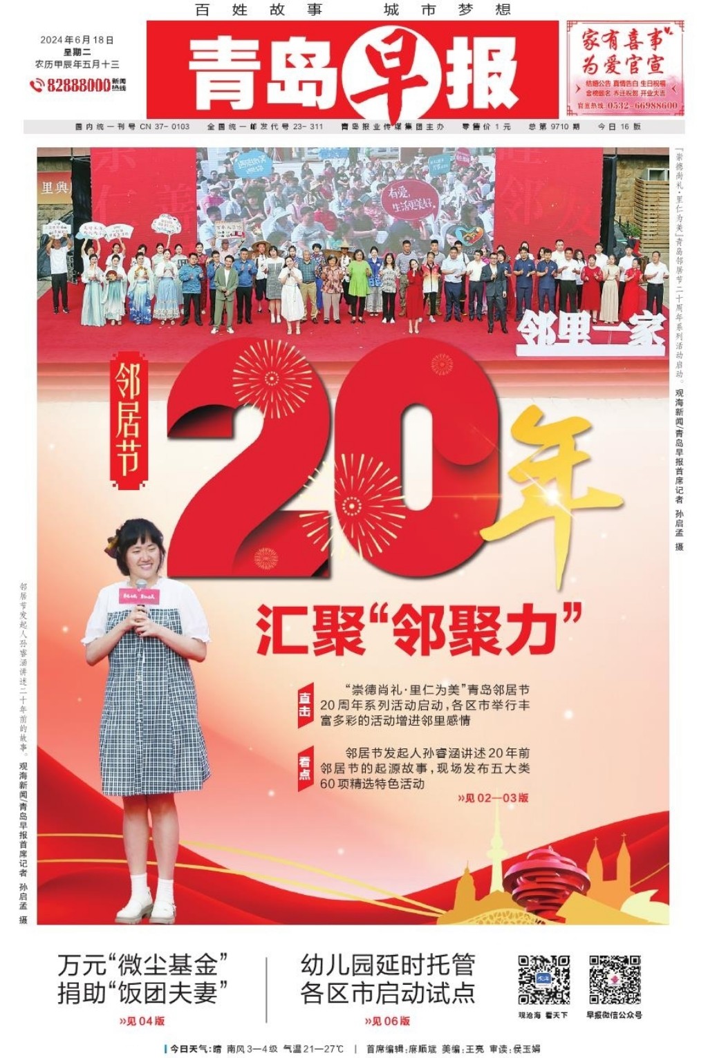 A01 头版 A02 今日看点 A04 大爱青岛 A05 发布 A06 教育 A07 青岛面孔 A08 身边事 A09 都市圈 A10 请拨82888000 A11 警戒线 A12 文娱 A13 健康 A14 医声 A15 常青树 A16 关注