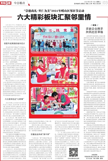 下一步,崂山区将以邻居节为契机,不断强化党建引领基层治理创新,持续丰富“邻居节”内涵外延,围绕“邻里学”“邻里帮”“邻里和”“邻里乐”“邻里颂”等板块举办特色活动,真正使系列活动成为社区凝聚人心、丰富文化、展示风貌的重要平台,引导居民走出家门、融入社区、参与治理,让市民群众有更多的获得感、幸福感、安全感,加快建设新时代社会主义现代化国际大都市的示范窗口区,全力谱写中国式现代化崂山实践新篇章。