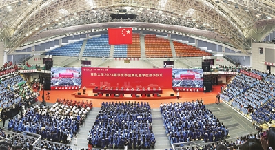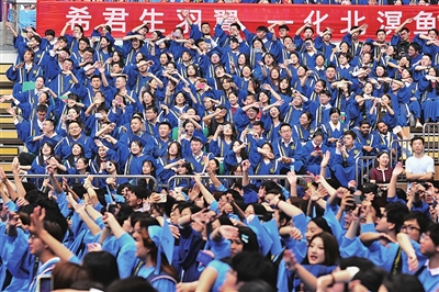 青大毕业典礼上,毕业生们随着音乐洋溢青春色彩。