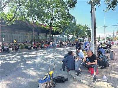 6月25日清晨,青岛早报记者来到株洲路灵活务工市场,市场周边已设置了施工围挡,现场仍有不少零工提着大包小包的工具在路边“靠活”,看到有车辆停靠在路边,他们一拥而上,趴在车窗上热切地询问是否有用工需求。