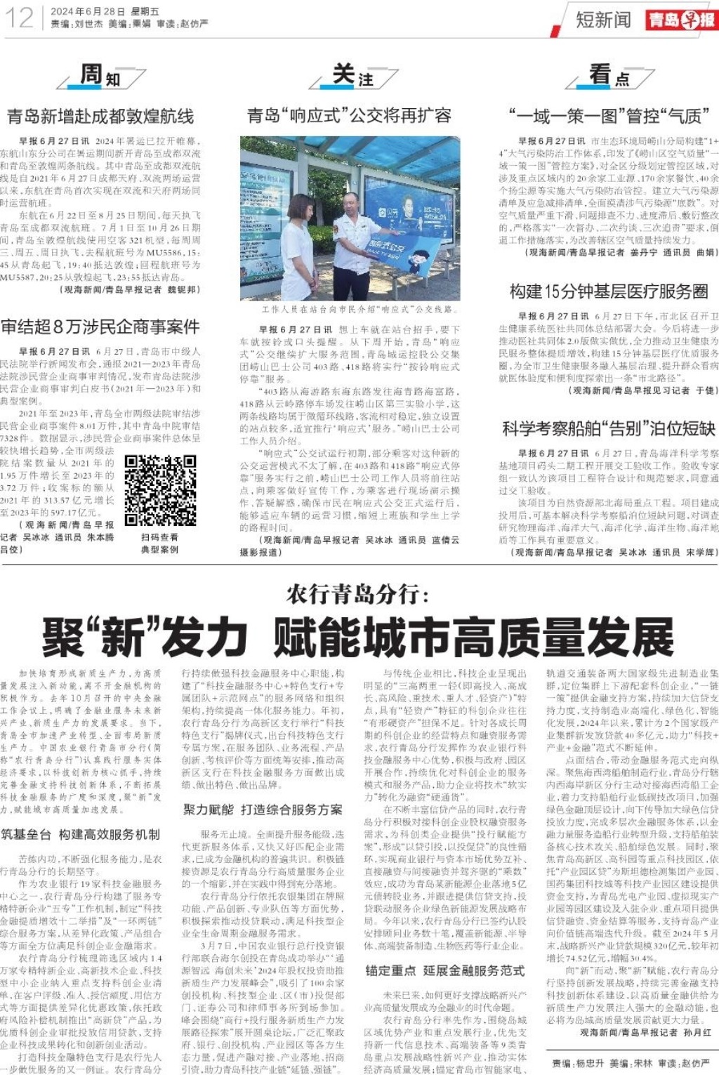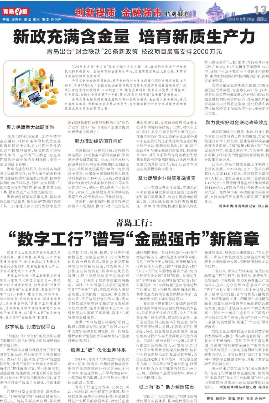 A01 头版 A02 划重点 A03 青岛面孔 A04 考季冲刺 A06 深读 A07 发布 A08 都市圈 A09 看见 A10 都市圈 A11 都市圈 A12 短新闻 A13 创新提质 金融强市 特别报道 A14 创新提质 金融强市 特别报道 A16 天下